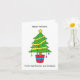 En enkel illustration av träd, dekorerad med en stjärna, tinsel och färgad baubles. Ord "Glad helg till min halvbror och hans familj" åtföljer bilden.