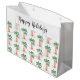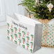 Den här julklappen i roligt är dekorerad med festive handflatan träd som är täckt i ljus och bubblor, och har "Glad helg" i snyggtens manusstil. Ursprunglig vattenfärg © Michele Davies.