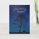 Detta kort skildrar en silhuett hjort och en vintersilhuett träd mot en mörk stjärnor himlar. Hjorten har en vinter- och stövhatt mellan jul och stil. Skriptet hälsning i guldfärgad färgad på framsidan är "GLAD HELG", eller så kan det redigeras som du vill. Meddelandet inuti är också redigerbart, eller så kan du använda standardinställningen "Önskar en julhelg av glädje och glädje".