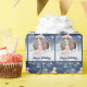 Cute hound hund med Glad helg text, rosa bockkapsyl och scarf i snö.