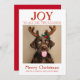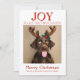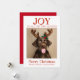 Elegant och humoristiskt hund-fotopapper till julkort för "två ben" från ett hundvalkföretag, med en berömvärd labradovalp med antlar och holly.