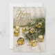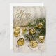 Festive helgdag platta kort för vänner och familj. Golden jingle klockor med julgrej är utstrykt över ett bok av lakan musik och utfällt med gyllene typografi i ett elegant-skript. All text på detta kort kan redigeras. Gillar du inte Glad helg? Byt till God jul, Season Greetings eller någon annan kort-fras som kostymer dina behov (och passar in i det tillgängliga utrymmet). Baksidan av vykortet har din returadress och en personlig namnteckning. Känslan kan också redigeras om du föredrar att lägga till något eget. Om du föredrar att skicka dina egna känslor till mottagarna tar du bara bort texten från mallområdet. Den här designen finns också som ett efterkort eller ett vikat helgdag-kort.