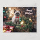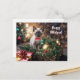 Cute kitten i en basket vid jul. En roligt-katt fick glad helg-kortet.