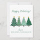 Skicka varmt helgdag önskemål med det här julkortet som innehåller fyra vackert dekorerade, gröna träd som är fulla av guldstjärnor. Glad helg! hälsning visas i skriptet elegant, med utrymme nedan för att anpassa din familj namn. Ett glatt och klassiskt val för vänner, familj och medarbetare som inte har någon helgdag i kärlek.