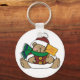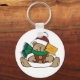 En julbjörn i snö som har en glad helg-skylt. Den här designen ser ut att vara effektiv i den här nyckelkedjan