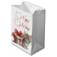 En söt kattunge med en röd julbog på en presentlåda. All text kan redigeras.