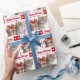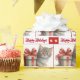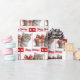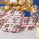 En söt kattunge med en julklapp på en röd bakgrund med Glad helg text. Bakgrunden till färg kan ändras.