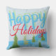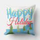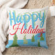Glad helg-kuddedesign med träd. Färg är , blues och grönt. Texten kan vara personlig till vilket meddelande som helst.