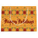 Ge påse, anpassa glad helg-texten till kostym till alla tillfälle, inklusive födelsedag. Färg är guld, , kranbär, burgundi och oliv grönt blomstrat mönster. Text kan också tas bort.