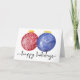 "Glad helg" i handskriftsformat och kalligrafiskt stil-skript, med handmålat vattenfärgat rött och blått julprydnadsmedel, julkort, ej religiösa. Inuti kortet står det: "Vill du ha en magisk och snygg helgdag!" Kristine Lee illustrerar vattenfärgen. Mer information finns på www.kristineleedesigns.com
