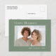 Modern elegant stil helgdag vykort med "Glad helg", din personlig namn och år i ny sofistikerad typografi. Den här designen har ett foto från helgdag som framhävs av en unik övertoning ram på en vacker grönt. Kortets baksida innehåller ett textutrymme för ditt anpassningsbar-meddelande eller kan lämnas tomt så att du vid behov kan skicka ett meddelande.