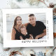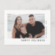 Konstnärliga, moderna, minimalistiska vykort i stil helgdag med "Glad helg" eller annan önskad text, personlig namn och år i ny sofistikerad typografi. Den här designen innehåller ditt personliga foto på framsidan som är artificiellt placerad med texten och skapar ett rent utseende på eleganten. Kortets baksida innehåller ytterligare ett textutrymme för ditt anpassningsbar-meddelande eller kan lämnas tomt så att du vid behov kan skicka ett meddelande.