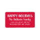 returetiketterna "Glad helg" har vit anpassningsbar som kan vara personlig med returadress och festiv röd bakgrund.