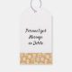 Märkre med julklapp med en snyggt julklapp mönster på en faux guld-bakgrund. Perfekt för den kommande säsongen för att lägga till handgjorda artiklar i företagets presenter, förpackningar eller unika småföretag. Ett enkelt hälsning-meddelande med möjlighet att skriva ut med ditt meddelande på baksidan av märkrn eller ta bort om du föredrar att lämna skriva. Denna stil av design finns även på andra produkter, inklusive presentsäckar, vävnad och pappra inslagningar, för att behålla din inslagning samordnad och professionell. Var snäll och meddela mig om du vill ha hjälp med den här mallen, och jag skulle vara lycklig för att hjälpa till.