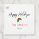 Personlig med anpassningsbar GLAD HELG, NAMN, ÅR i svart och röd med grönt i glanskhet. Röda Rand Mönster på baksidan. Enkel att anpassa text, färg. Underbar helgdag, märkre för partistöd, lager, Värdinna-gåvor, evenemang. Modern, tidslös, Festive. Blanda och matcha hela jul-/Helgdag-/presentationsinsamlingar efter TMCdesigns.