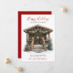 Det nya boet för helgdagarnas annonskort med en festilt dekorerad ytterdörr för Glad helg med boughs och träd, en krans och röda helgdag skulle vara perfekt att skicka till dina vänner och familj nu när du har flyttat till ett nytt hem. Känslan är anpassade. Få nog så att alla du vet och kärlek har din ny adress. De kommer att bli så entusiastiska över ditt stora drag!