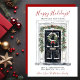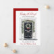 Det nya hemmet för helgdagarnas annonskort i Glad helg med en välförtjänt dekorerad ytterdörr med gräs boughs och träd, en krans och röda helgdag skulle vara perfekt att skicka till dina vänner och familj nu när du har flyttat till ett nytt hem. Känslan är anpassade. Få nog så att alla du vet och kärlek har din ny adress. De kommer att bli så entusiastiska över ditt stora drag!