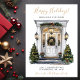 Det nya hemmet för helgdagarnas annonskort i Glad helg med en välförtjänt dekorerad ytterdörr med gräs boughs och träd, en krans och röda helgdag skulle vara perfekt att skicka till dina vänner och familj nu när du har flyttat till ett nytt hem. Känslan är anpassade. Få nog så att alla du vet och kärlek har din ny adress. De kommer att bli så entusiastiska över ditt stora drag!