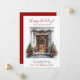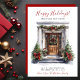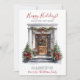 Det nya hemmet för helgdagarnas annonskort med en skuren trädörr med gräs garland, träd, en krans och röda helgdag i Glad helg skulle vara perfekt att skicka till dina vänner och familj nu när du har flyttat till ett nytt hem. Känslan är anpassade. Få nog så att alla du vet och kärlek har din ny adress. De kommer att bli så entusiastiska över ditt stora drag!