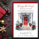 Det nya hemmet för helgdagarnas annonskort i Glad helg med en väldekorerad röd ytterdörr med träd, en krans och röda helgdag skulle vara perfekt att skicka till dina vänner och familj nu när du har flyttat till ett nytt hem. Känslan är anpassade. Få nog så att alla du vet och kärlek har din ny adress. De kommer att bli så entusiastiska över ditt stora drag!