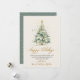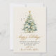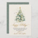 Modern Elegant Calligraphy Glad helg skript Julgran icke-fotopilkort. Det här festliga, enkla minimalistiska Helgdagskortet har en vattenfärg julgran med dekoration guld och konetti och en "Glad helg" hälsning som är skriven i en fin, handskriven typsnittstyp i guld på gräddvit eller beige bakgrund. På motsatt sida, vid golden glitter snö eller vid mousserande guld konetti mot dammig grönt bakgrund. Det här Personligen för festlig Anpassningsbar är ett underbart sätt att påminna nära och kära om att du tänker på dem den här Julhelgen.