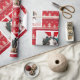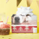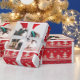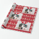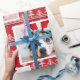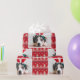 Glad helg med ett rött och vitt mysigt nordiskt Mönster med gräs träd. Visa av hund, katten eller alla sällskapsdjur, eller så kan du också visa dina barn eller familjefoto. Fotobilden Australian shepherd hund kan ändras eller lämnas som den är.