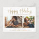 Det här minimalistiska, guld och vita julkortet säger "Glad helg från vårt nya hem" i det moderna handskrivna manuset från Faux guld, med plats för två av dina foton. Baksidan av vykortet har plats för en mer personlig anteckning. En perfekt och ett festligt sätt att låta vänner, familjer och kunder veta att du har flyttat.
