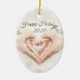Glad helg och datum. Elegant fotohjärta händer Julgransprydnad Keramik