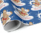 Julens pepparkaksgubbe dykar i mjölk på blå bakgrund med Glad helg text. Bakgrunden till färg kan ändras.