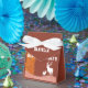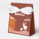 Glad helg-typografi på helgdag, med brunt bakgrund, som omfattar träd, måne och renarna. Personligens favoritruta.