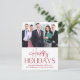 Elegant och ett modernt vykort för företagsverksamhet som visar dina kunders uppskattning denna julsäsong med ett foto av ditt företagslag och "Glad helg" i det säsong-röda manuset och den unika typografin. Anpassa din namnteckning-rad och ditt företag namn. Lägg till ytterligare ett meddelande, tvärtom.
