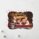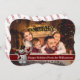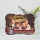 En modern fotojulkortsdesign med din familj som fyller kortet ansikte. Roligt snögubbe dekorera med rött textband för mörk för ord.