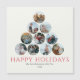De hälsningskort som dina vänner och familj kommer att få behålla och njuta av i åratal för kom! Kan inte plocka bara ett eller två av dina favoritfoton i familjen? Dessa 5,25-tums x 5,25-tums kylskåp har platshållare för 10 av dina favoritfoton, familjens namn och året. Alla bilderna är runda i form av ett Julgran. Hälsning, "Glad helg", är i rött.
