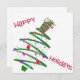 Ett platta Julhälsningar kort i glad helg med en katt på ett tippat Julgran. Den här designen finns i kortartiklar och på andra artiklar i det här butiken.