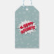 Glad helg tecknad stil illustration med julklapp och snöflingor dekoration på blå bakgrund