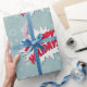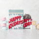 Glad helg tecknad stil illustration med julklapp och snöflingor dekoration på blå bakgrund