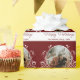 Glad helg Red Foliage Family Photo Wrapping Papper. Fint vit löv på röd bakgrund. Anpassa papper med ditt foto, din familj namn och ditt år.
