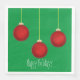 En festlig helgdag med tre ljusa röda dekorationer inställda på gröntens bakgrund. Text och bakgrund färg kan anpassas.