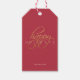 Märkrn julklapp i vår röda och guld "glad helg"-helgdag. Anpassa de här märkrna med din familj namn. Märkrn återgår till en solid grönt-design.