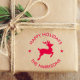 Elegantens självbelåtande frimärke för din personliga korrespondens och presentförpackning med "Glad helg" och ditt namn i enkel modern typografi och en silhuett av en ren.