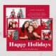 Det här enkla och stilrena julkortet med flera bilder säger "Glad helg" med vit, modern typografi på en festlig röd bakgrund, med en rutnätslayout med fem bilder på framsidan av kortet. Baksidan innehåller ytterligare två bilder, plus en plats för att lägga till ditt eget personliga meddelande.