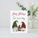 Rustic land stil helgdag vykort med "Glad helg" i kalligrafiskript för snyggt med personlig namn och år. Den här unika designen har en vattenfärgad gnomfamilj, klädd för tillfälle, i sina färgstarka röda, grönt- och guld-helgdag. Kortets baksida innehåller textblanksteg för ditt anpassningsbar-meddelande, namn i familjen och året. Redigera enkelt designen för att lägga till, ta bort och justera gnomerna så att de passar din familj storlekt.