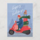 I den här roligten finns ett kort för andra helgdag än fotokort, en illustration i hand plockade av en kvinna som kör en skoter fylld med gåvor och ett vackert glad helg hälsning.