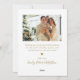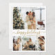 Modern Guld och White Glad helg Script 4 Photo Collage jul Card. Detta minimalistiska julkort har en 4-fotorasterkollage på framsidan och ett extra-foto på baksidan. "Glad helg" hälsning är elegant handskrivet i kalligrafin i guld på en ren vit bakgrund och erbjuder en chic och en modern beröring till ditt helgdag-budskap. På baksidan finns en hälsning-anpassade-mall med en hjärtpunktsmotiv och plats för ytterligare ett foto. Perfekt för att dela festlig glädje med familj och vänner, detta personlig är ett idealiskt sätt att fira julhelgen i stil.