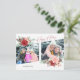 Coola, modernt och helt anpassade fotofoto hälsning med en unik diagonal tvåfotomall med två kluster av blommigt med vattenfärg elegant, anpassningsbar "Glad helg"-grafik i ett rött namnteckning teckensnitt och redigerbar text fält. Baksidan har ytterligare fotomall, blommigt sprey och fält. Alla grafik- och textfält i inslag är anpassade.