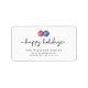 Elegant och enkel juladressetikett, med vattenfärgade röda och blå juldekorationer och handskrivna Helgdag med texten "Glad helg". Etikett för enkel och elegant jultema. Kristine Lee illustrerar vattenfärgen. Mer information finns på www.kristineleedesigns.com