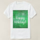 "Glad helg" är skrivet i ett typsnitt som kan anpassas efter kostym. Tre ömtåliga snöflingor dansar om gröntens bakgrund.
