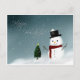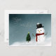 Ett sött vykort med ett vitt gräns med ett sött snögubbe och ord "Glad helg".