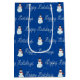 Glad helg text i nautisk rekreation med snögubbe och snöflingor i blå bakgrund. Bakgrunden till färg kan ändras.