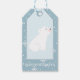 Den moderna säsong-presentens märkre i trendig i dammblått och vitt med fallande snöflingor och en söt liten vit polar.++++++++++ Anpassa den med texten och namnteckning!